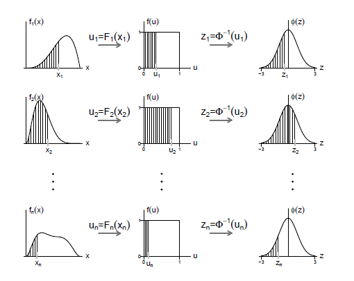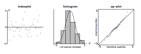 A prova é deixada novamente como um exercício para o leitor. Usando esse teorema, uma segunda versão de pseudo-resíduos surge de uma simples transformação dos pseudo-resíduos uniformes por meio da função de distribuição normal padrão: \begin{equation} z_i \, = \, \Phi^{-1}(u_i) \, = \, \Phi^{-1}\big( F_{X_i}(x_i)\big)\cdot \end{equation}
