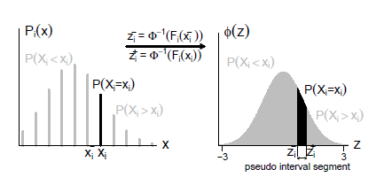 A construção do segmento dos pseudo-resíduos normais de uma variável aleatória discreta é ilustrada na Figura V.9.